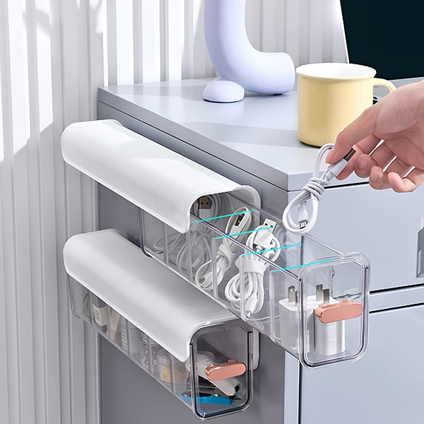 Te-ai săturat să pierzi pixuri, încărcătoare sau articole de birou? Suportul adeziv al ORGABIN facilitează lipirea acestuia sub birouri sau mese pentru utilizarea eficientă a spațiului. Dimensiunea compactă asigură faptul că toate elementele dvs. esențiale mici rămân organizate și ușor de găsit.