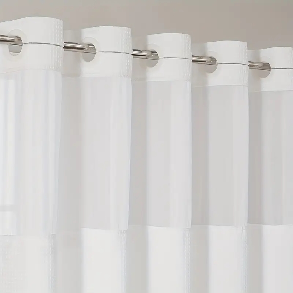 Perdeaua de duș CURTELLE are un design impermeabil cu două straturi, oferind o barieră excelentă împotriva apei pentru a menține baia uscată și confortabilă.