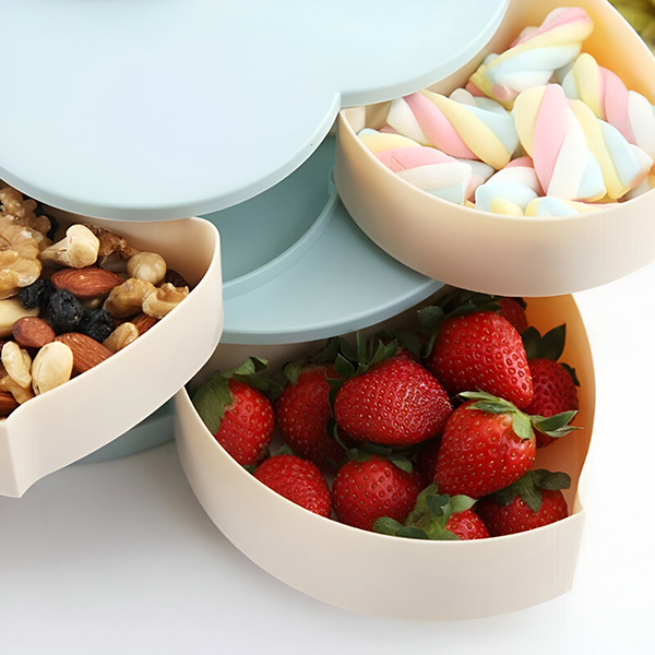 Compartimentele multiple permit depozitarea unei game largi de articole, de la bomboane, fursecuri, fructe uscate, măsline, bucăți de brânză și alte gustări.