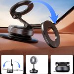 Suportul pentru telefon MAGHOLDZ folosește o prindere puternică cu vid care se intensifică odată cu vibrațiile, menținând telefonul fix pe suprafețe netede fără a lăsa urme pe sticlă, bord sau birou.