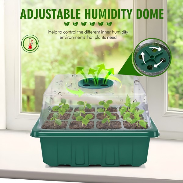 Fiecare tavă are 12 orificii și un capac cu un comutator de ventilație. Acum puteți controla nivelul de umiditate și asigurați cel mai bun mediu pentru răsadurile dumneavoastră. Creșteți rădăcini sănătoase și bine ventilate pentru plante mai puternice.